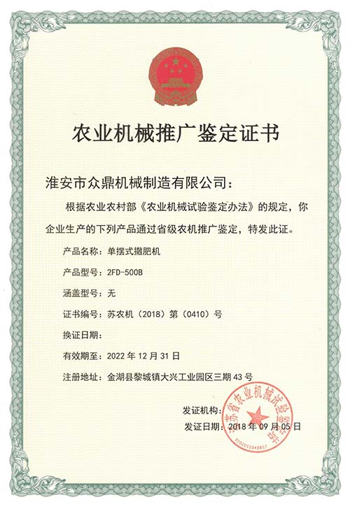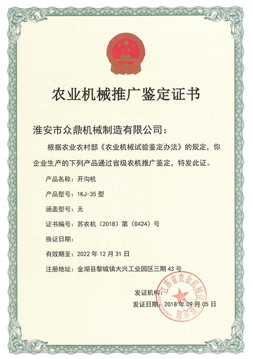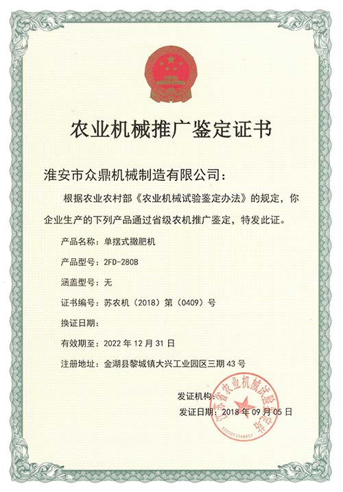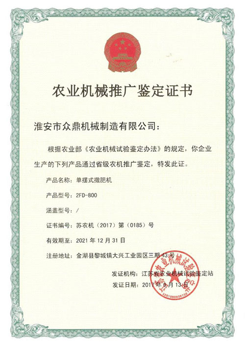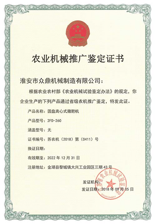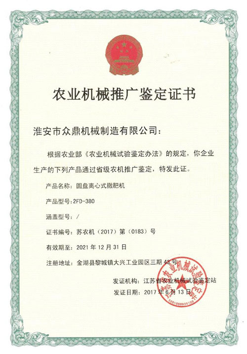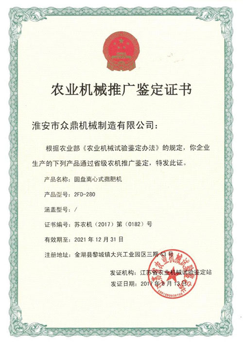 農(nóng)業(yè)機(jī)械推廣鑒定證書(shū)2FD-280 農(nóng)業(yè)機(jī)械推廣鑒定證書(shū)2FD-380 農(nóng)業(yè)機(jī)械推廣鑒定證書(shū)2FD-500 農(nóng)業(yè)機(jī)械推廣鑒定證書(shū)2FD-800 農(nóng)業(yè)機(jī)械推廣鑒定證書(shū)1KJ-35型 農(nóng)業(yè)機(jī)械推廣鑒定證書(shū)2FD-260 農(nóng)業(yè)機(jī)械推廣鑒定證書(shū)2FD-280B 農(nóng)業(yè)機(jī)械推廣鑒定證書(shū)2FD-500B 農(nóng)業(yè)機(jī)械推廣鑒定證書(shū)7ZDGS-200單軌運(yùn)輸機(jī) 企業(yè)資信等級(jí)證書(shū)3A認(rèn)證證書(shū) 國(guó)家強(qiáng)制認(rèn)證3C 認(rèn)證證書(shū) |